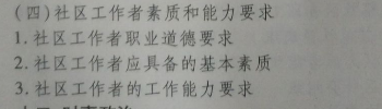 此部分包括社区概论、社区建设、社区居民自治、社区组织、社区管理服务工作。该部分整体变动不大,基本没变动。