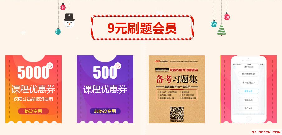 【导读】陕西信合9元刷题会员会员包含:协议优惠券5000(仅限公告前报班使用)非协议优惠券500、一个月有题APP专属无限刷题、陕西信合备考习题集(包邮)。活动时间2018年1月1日-公告前点击购买会员陕西信合备考图书教材25元