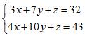 根据题意能列出三元一次方程组,而此时两个方程三个未知数,意味着这个方程组有无穷组解。但题目并没有让我们求多少组解,而是求未知数之和。也就是说虽然此题有多组解,但每组解的未知数之和是确定的,所以我们只需求出无穷组解中的某一组再求和即可。